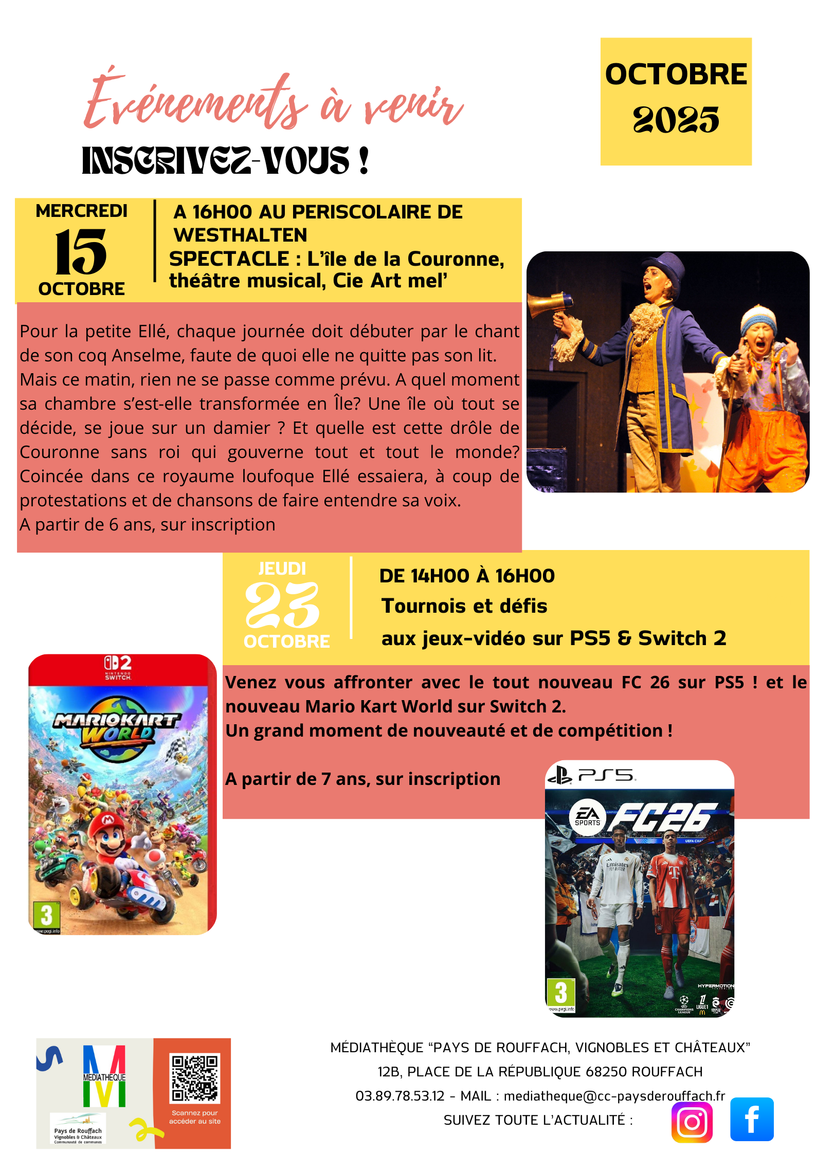 🎉 Programme des Animations d'Octobre 2025 à la Médiathèque Ludothèque « Pays de Rouffach, Vignobles et Châteaux » 🎉